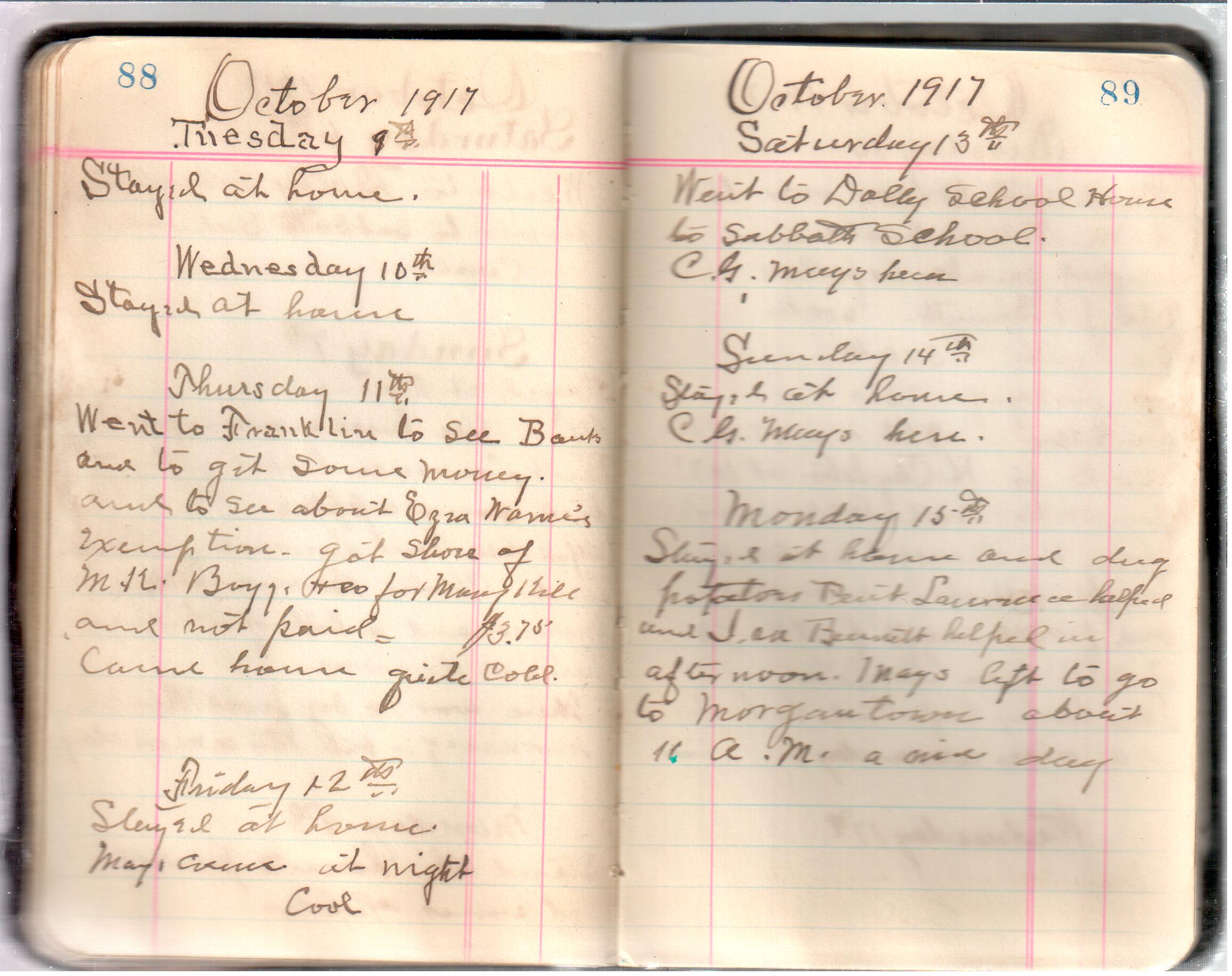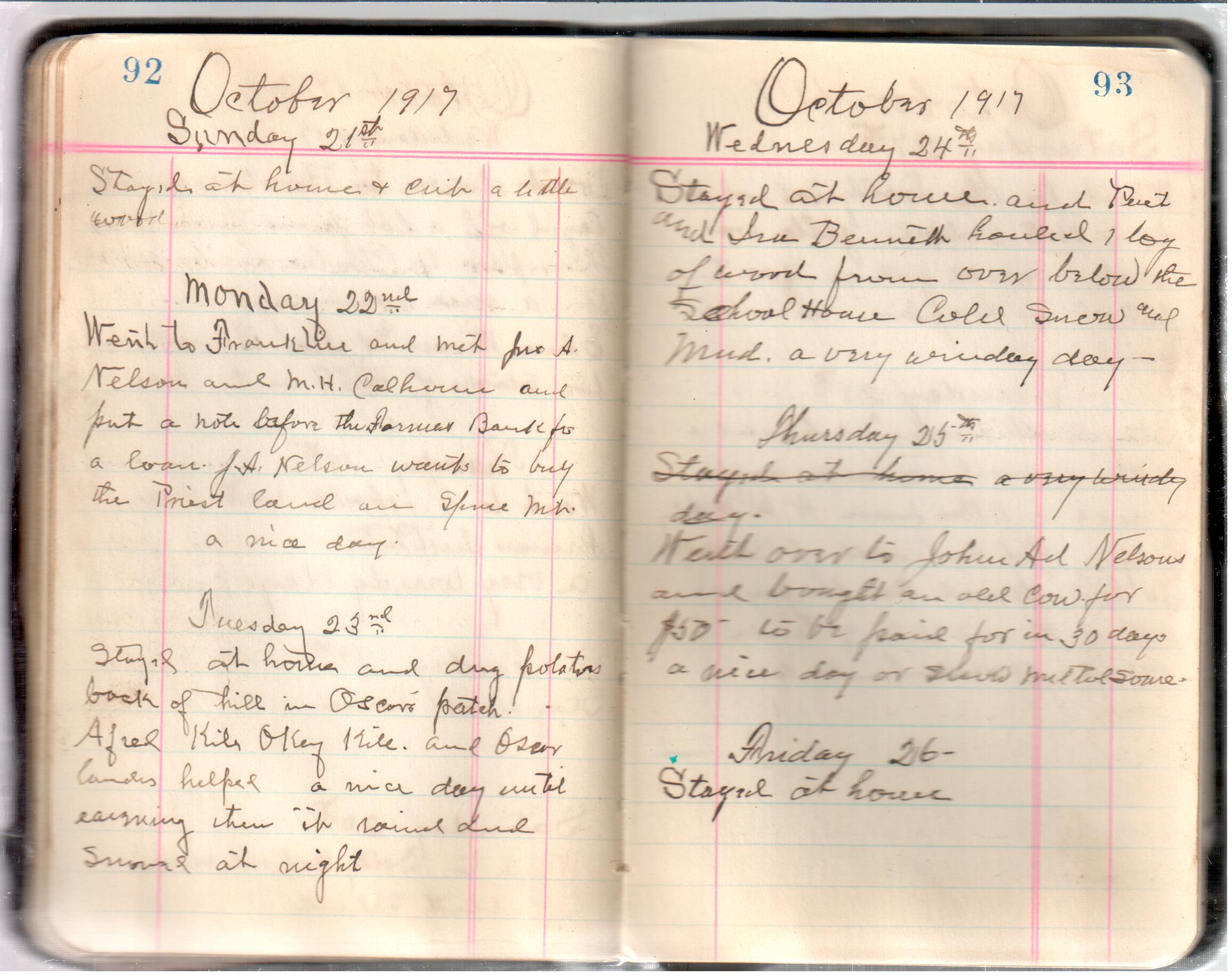 D. A. Landes Diaries: 1917-18 This diary spans January 1, 1917 - May 31, 1918. Use slideshow or see pages individually: Covers Inside Front Cover ABCD EFGH Pages 0-1 Pages 2-3 Pages 4-5 Pages 6-7 Pages 8-9 Pages 10-11 Pages 12-13 Pages 14-15 Pages 16-17 Pages 18-19 Pages 20-21 Pages 22-23 Pages 24-25 Pages 26-27 Pages 28-29 Pages 30-31 Pages 32-33 Pages 34-35 Pages 36-37 Pages 38-39 Pages 40-41 Pages 42-43 Pages 44-45 Pages 46-47 Pages 48-49 Pages 50-51 Pages 52-53 Pages 54-55 Pages 56-57 Pages 58-59 Pages 60-61 Pages 62-63 Pages 64-65 Pages 66-67 Pages 68-69 Pages 70-71 Pages 72-73 Pages 74-75 Pages 76-77 Pages 78-79 Pages 80-81 Pages 82-83 Pages 84-85 Pages 86-87 Pages 88-89 Pages 90-91 Pages 92-93 Pages 94-95 Pages 96-97 Pages 98-99 Pages 100-101 Pages 102-103 Pages 104-105 Pages 106-107 Pages 108-019 Pages 110-111 Pages 112-113 Pages 114-115 Pages 116-117 Pages 118-119 Pages 120-121 Pages 122-123 Pages 124-125 Pages 126-127 Pages 128-129 Pages 130-131 Pages 132-133 Pages 134-135 Pages 136-137 Pages 138-139 Pages 140-141 Pages 142-143 Pages 144-145 Pages 146-147 Pages 148-149 Pages 150-151 Pages 152-153 Pages 154-155 Pages 156-157 Pages 158-159 Pages 160-161 Pages 162-163 Pages 164-165 Pages 166-167 Pages 168-169 Pages 170-171 Pages 172-173 Pages 174-175 Pages 176-177 Pages 178-179 Pages 180-181 Pages 182-183