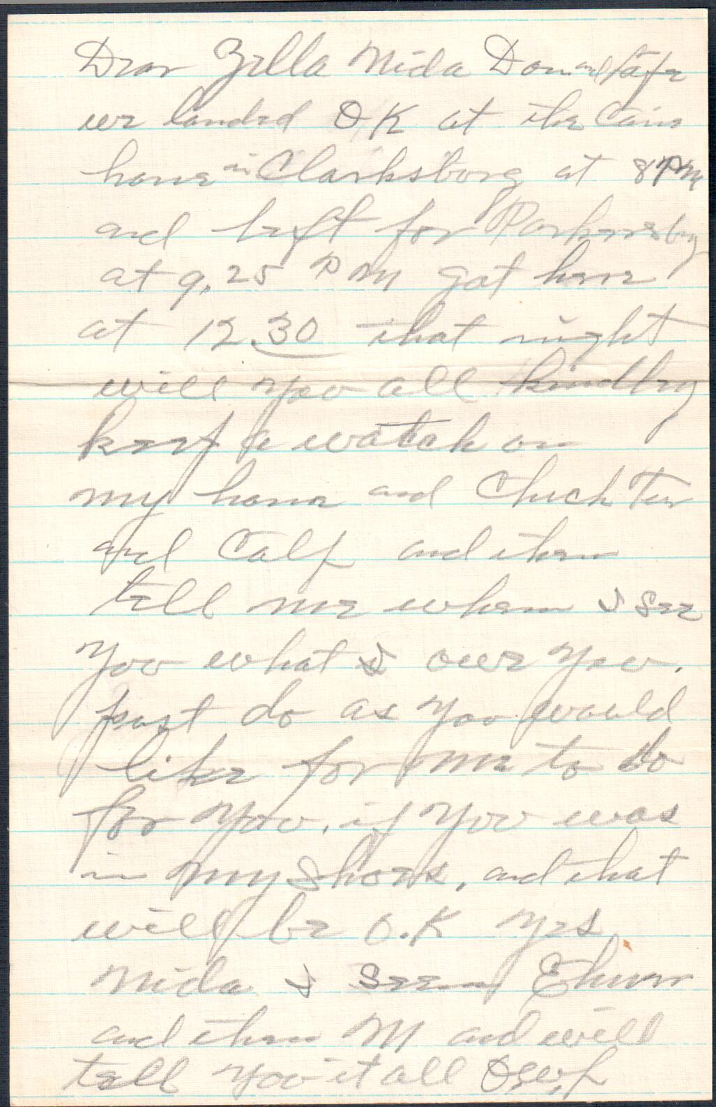 August 22, 1927: Letter to Zella Landes, Riverton, WV
